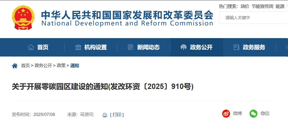 國家發(fā)展改革委 工業(yè)和信息化部 國家能源局 關(guān)于開展零碳園區(qū)建設(shè)的通知國家發(fā)展改革委 工業(yè)和信息化部 國家能源局關(guān)于開展零碳園區(qū)建設(shè)的通知發(fā)改環(huán)資〔2025〕910號各省、自治區(qū)、直轄市發(fā)展改革委、工業(yè)和信息化主管部門、能源局: 為貫徹落實(shí)黨中央、國務(wù)院決策部署,積極穩(wěn)妥推進(jìn)碳達(dá)峰碳中和,加快經(jīng)濟(jì)社會發(fā)展全面綠色轉(zhuǎn)型,支持有條件的地區(qū)率先建成一批零碳園區(qū),逐步完善相關(guān)規(guī)劃設(shè)計(jì)、技術(shù)裝備、商業(yè)模式和管理規(guī)范,有計(jì)劃、分步驟推進(jìn)各類園區(qū)低碳化零碳化改造,助力園區(qū)和企業(yè)查看詳情>>