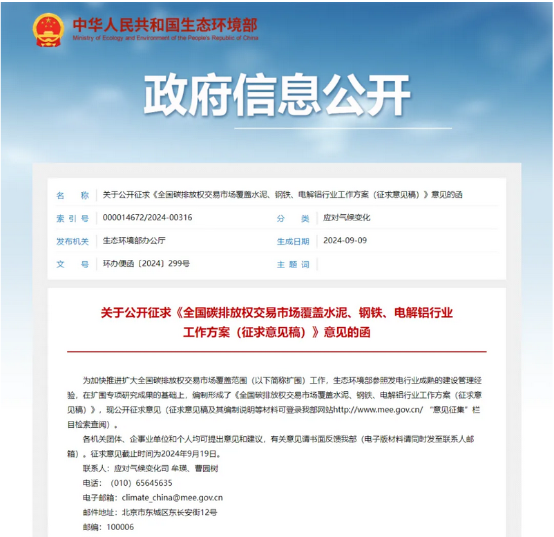 全國(guó)碳排放權(quán)交易市場(chǎng)覆蓋水泥、鋼鐵、 電解鋁行業(yè)工作方案( 征求意見(jiàn)稿 )全國(guó)碳排放權(quán)交易市場(chǎng)覆蓋水泥、鋼鐵、電解鋁行業(yè)工作方案( 征求意見(jiàn)稿 )為貫徹落實(shí) 2024 年《政府工作報(bào)告》要求,積極穩(wěn)妥有序?qū)⑺?、鋼鐵、電解鋁行業(yè)納入全國(guó)碳排放權(quán)交易市場(chǎng)覆蓋范圍,根據(jù)《碳排放權(quán)交易管理暫行條例》,制定本方案。一、總體要求以習(xí)近平新時(shí)代中國(guó)特色社會(huì)主義思想特別是習(xí)近平生態(tài)文明思想和習(xí)近平經(jīng)濟(jì)思想為指導(dǎo),全面貫徹黨的二十大、二十屆三中全會(huì)精神,落實(shí)全國(guó)生態(tài)環(huán)境保護(hù)大會(huì)部署,按查看詳情>>
