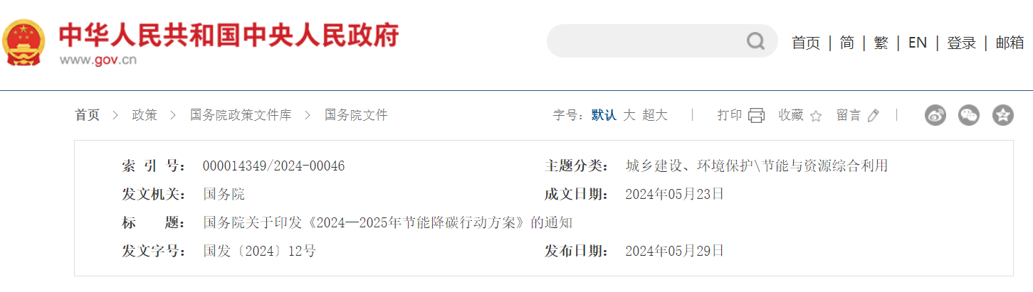 國務(wù)院關(guān)于印發(fā)《2024—2025年 節(jié)能降碳行動(dòng)方案》的通知國務(wù)院關(guān)于印發(fā)《2024—2025年節(jié)能降碳行動(dòng)方案》的通知國發(fā)〔2024〕12號(hào)各省、自治區(qū)、直轄市人民政府,國務(wù)院各部委、各直屬機(jī)構(gòu):現(xiàn)將《2024—2025年節(jié)能降碳行動(dòng)方案》印發(fā)給你們,請(qǐng)認(rèn)真貫徹執(zhí)行。國務(wù)院 2024年5月23日 (本文有刪減)2024—2025年節(jié)能降碳行動(dòng)方案節(jié)能降碳是積極穩(wěn)妥推進(jìn)碳達(dá)峰碳中和、全面推進(jìn)美麗中國建設(shè)、促進(jìn)經(jīng)濟(jì)社會(huì)發(fā)展全面綠色轉(zhuǎn)型查看詳情>>