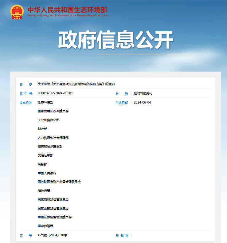 生態(tài)環(huán)境部關(guān)于印發(fā)《關(guān)于建立碳足跡管理體系的實(shí)施方案》的通知關(guān)于建立碳足跡管理體系的實(shí)施方案為深入貫徹《中共中央 國務(wù)院關(guān)于完整準(zhǔn)確全面貫徹新發(fā)展理念做好碳達(dá)峰碳中和工作的意見》《中共中央 國務(wù)院關(guān)于全面推進(jìn)美麗中國建設(shè)的意見》,落實(shí)國務(wù)院《2030 年前碳達(dá)峰行動(dòng)方案》,加快建立碳足跡管理體系,形成綠色低碳供應(yīng)鏈和生產(chǎn)生活方式,推動(dòng)新質(zhì)生產(chǎn)力發(fā)展,助力實(shí)現(xiàn)碳達(dá)峰碳中和目標(biāo),根據(jù)國務(wù)院關(guān)于碳足跡管理工作部署和分工意見,制定本方案。一、總體要求以習(xí)近平新時(shí)代查看詳情>>
