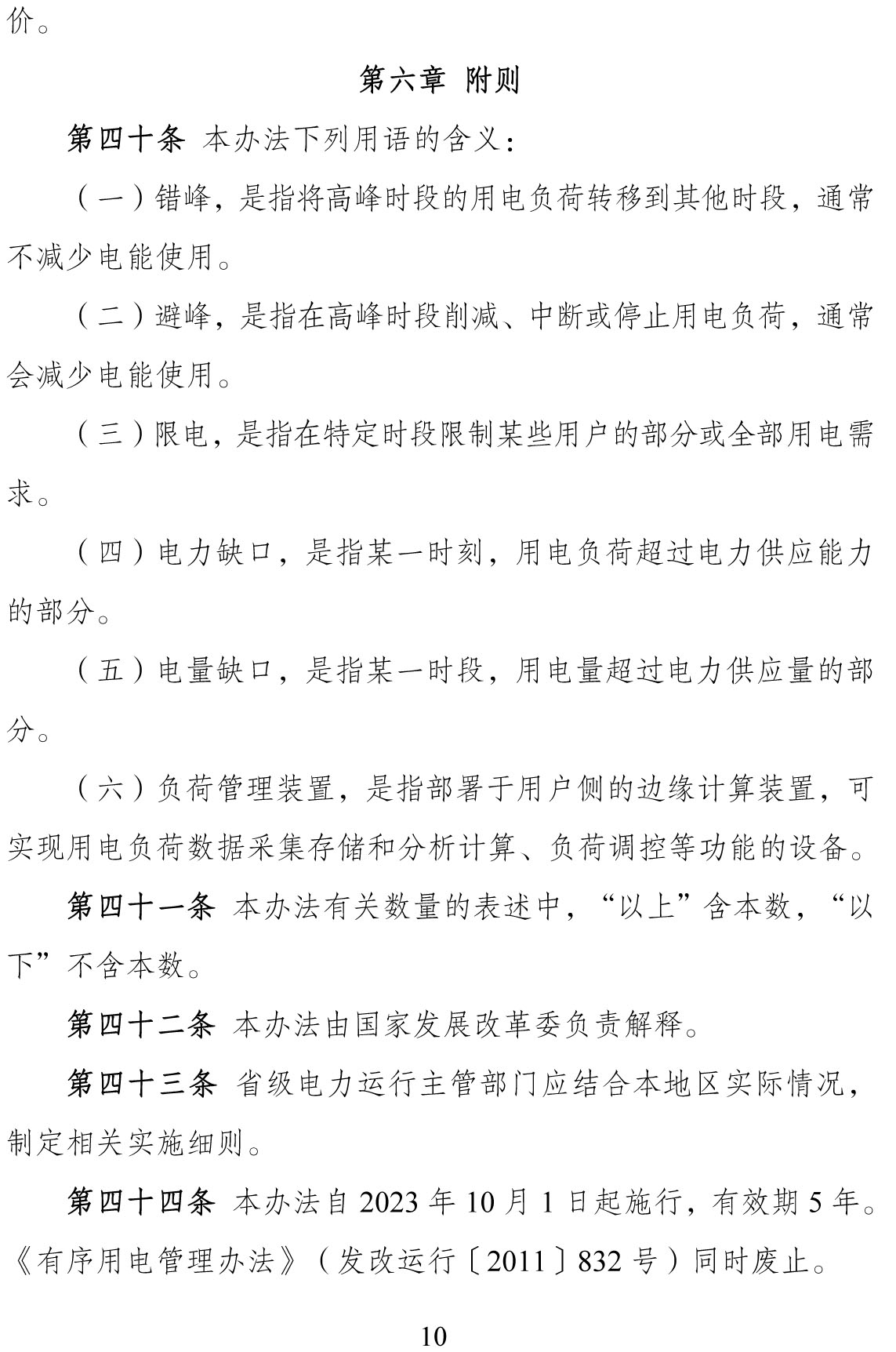 為貫徹落實(shí)黨的二十大精神,加快規(guī)劃建設(shè)新型能源體系,深化電力需求側(cè)管理,確保電網(wǎng)安全穩(wěn)定運(yùn)行,保障社會(huì)用電秩序,我們對(duì)2011年發(fā)布的《有序用電管理辦法》進(jìn)行了修訂,形成了《電力負(fù)荷管理辦法(2023年版)》?,F(xiàn)印發(fā)給你們,請(qǐng)遵照?qǐng)?zhí)行。